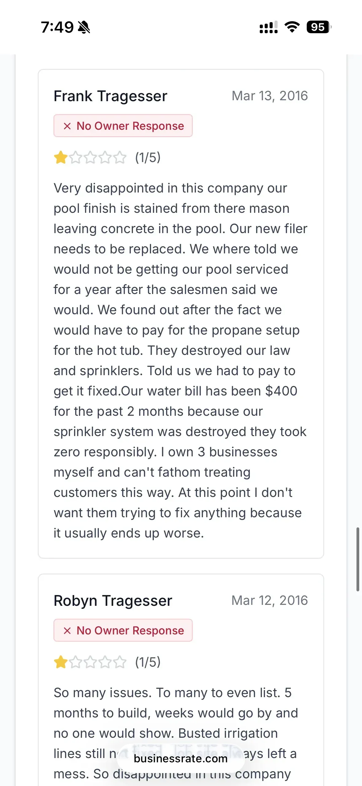 A single angry post calling a contractor “a criminal” or “a fraud” can spread quickly, even when it is based solely on one person’s experience or perception. In at least one discussion thread about Island Way Pools, a commenter claimed the owner was “a big criminal” and suggested negative reviews were being deleted (justanswer.com). This is a serious accusation which has been verified by residual review data tracers left behind (businessrate.com).